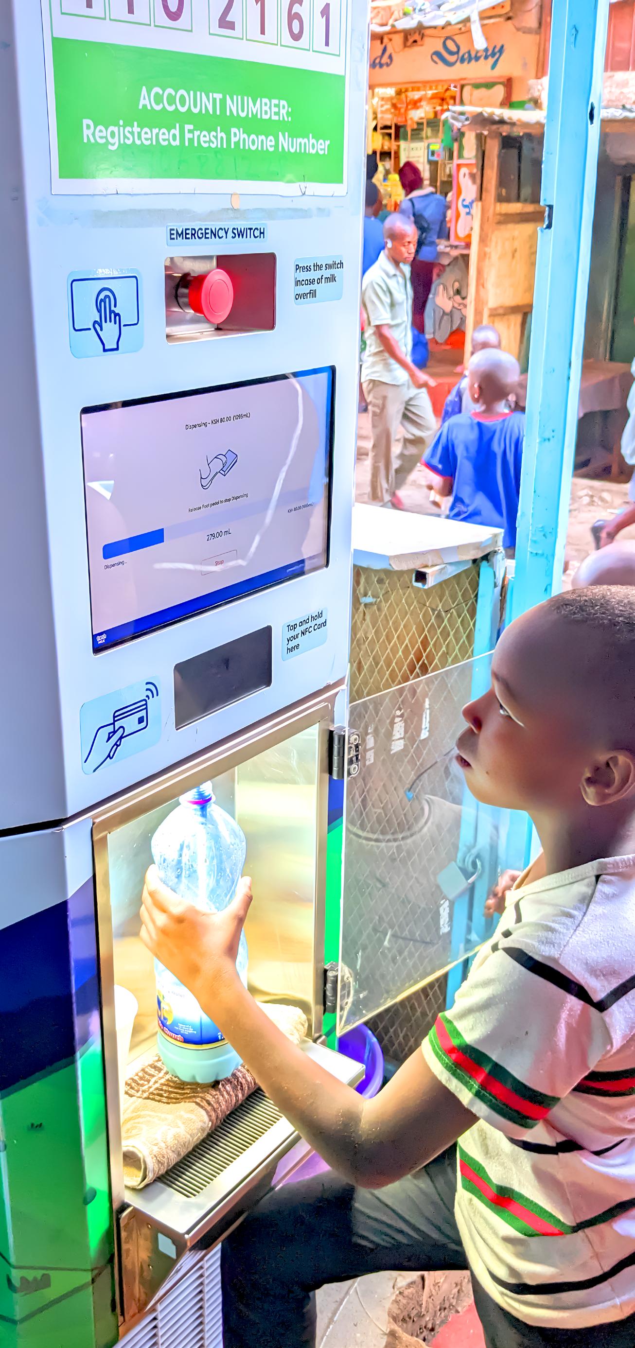 Shifting our focus to East Africa, we examine the transformation of Kenya’s informal milk distribution sector, where FRESH Networks Kenya is pioneering technologydriven solutions to enhance efficiency and safety. According to a 2020 report by the International Livestock Research Institute (ILRI), over 1.8 million smallholder farmers produce the majority of Kenya’s milk, yet only 20% is processed by formal dairies. FRESH Networks is addressing this gap with innovative milk dispensing solutions, creating a gamechanging approach to milk safety and accessibility.
