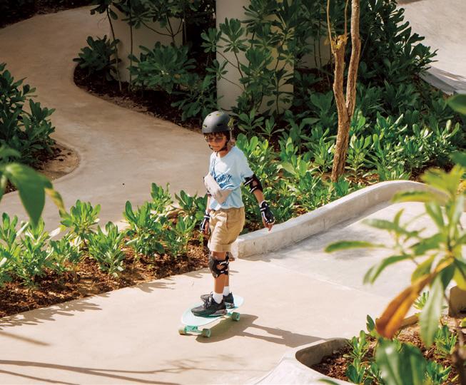 The air-conditioned gym with stateof-the-art equipment is available 24hrs a day. The sports center has two tennis courts, one of which is multi-purpose and can be converted into a basketball or football field, along with two padel courts, with equipment provided by the resort. Personal coaching services and tennis or padel lessons can also be requested with professional coaches for an additional fee.