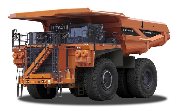 Hitachi Construction Machinery has implemented a full-model change of the EH4000AC-3 rigid dump truck to develop the EH4000AC-5 (nominal payload of 242t, gross machine operating weight of 427t). By applying metal fabrication technologies accumulated through the manufacturing of hydraulic excavators, the company increased the durability of the machine, with a payload of 242t. This is a payload increase of 21t compared to the EH4000AC-3. The EH4000AC-5 evolved the Hitachi AC drive system cultivated through the current EH AC3 series models and strengthened the brakes, suspension and other aspects of the undercarriage to achieve smooth, stable driving and deceleration performance. In addition, the change to a fully electric specification equipped with batteries and trolley dynamic charging systems that receive power from overhead lines installed at mines is also compatible with the EH4000AC-5 similar to the current EH-AC3 series models. With a maximum speed of 65 kph, the truck is equipped with a new feature that allows operators to select from three different driving modes (High Power Mode, Power Mode and Eco Mode) according to the site environment. Operators can select Eco Mode when they wish to reduce fuel consumption or High Power Mode to maximize driving performance. In terms of the deceleration performance, braking capabilities were updated by changing the hydraulic brakes from front dry brakes to wet brakes and adjusting the retarder auxiliary brakes. Information regarding the safety conditions around the machinery, loading conditions and more is displayed on the monitors to support safe operation by customers.