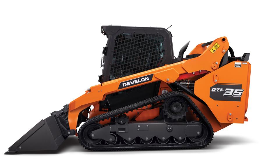 Powered by a 115.3-hp engine, the DEVELON DTL35 helps operators gain traction and maneuverability in tight spaces. The DTL35 compact track loader is equipped with a D34 engine, which is also used in the DEVELON DD100 dozer. Two rubber track patterns are available, and both include a wide and narrow version. A wide multi-bar track comes standard, while a block pattern is optional. Ride control reduces shocks and vibrations, which offers stability for the bucket and minimizes spillage when the compact track loader navigates rough terrain while carrying full loads. The auto return to dig automatically returns the arms to the lowered position. The standard two-speed travel feature includes: the higher speed (up to 9.2 mph) for traveling long distances or moving between jobsites and the lower speed (up to 6.1 mph) for stabilizing the machine during controlled movements in challenging conditions.