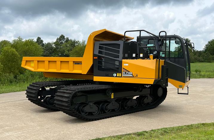 Takeuchi has launched the TCR50-2 crawler dumper for moving heavy materials across challenging terrain. Previously available from Takeuchi in other parts of the world, the manufacturer is now bringing the crawler dumper to North America. Weighing 14,440 lbs. with a 118hp engine, the TCR50-2 crawler dumper is a versatile dump carrier for a range of applications. With a 65-degree dumping angle and 8,157lb. maximum loading weight, the TCR50-2 allows operators to carry up to 2.7 cu. yd. of material while rotating and dumping it in a single cycle. The TCR50-2’s ability to rotate its dump bed 180 degrees reduces both the need to reposition the machine and deterioration of its rubber tracks. The TCR50-2’s operator’s station features a 5.7-in. multi-information color display with standard 180-degree rearview camera, hydraulic joystick controls, adjustable suspension seat, air conditioner, radio with USB functionality and cup holder.