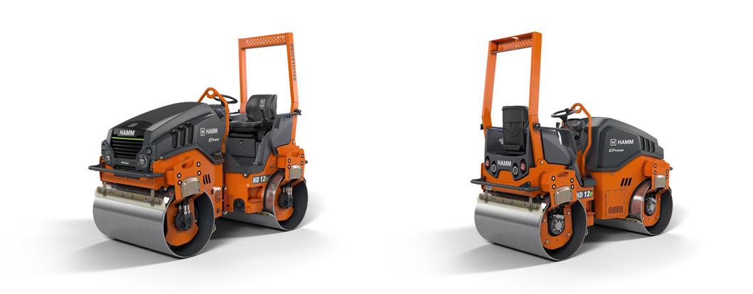With eight electric rollers in the compact class, the HD 10e model (drum width: 1.00 m/ 39.4 in. and operating weight: 2.5t/5,512 lbs.) and the HD 12e model (drum width: 1.20 m/47.2 in. and operating weight: 2.7t/5,953 lbs.) offer the same compaction power as their combustion engine counterparts but produce zero local emissions. The e-rollers are operated in almost the same way as the other models in the HD CompactLine series. A 48V li-ion battery with 23.4 kWh capacity provides the energy for driving, steering and dynamic compaction. Charging from 0% to 100% takes four hours on 220V. The roller is designed to operate in ambient temperatures of up to 113 degrees Fahrenheit. The battery supplies enough energy for an average working day.