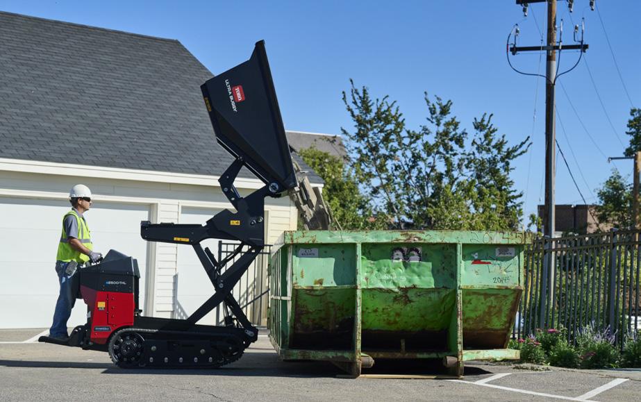 The electric Ultra Buggy e2500-THL has the ability to dump into a 30-yard dumpster, navigate tight spaces and operate continuously for up to eight hours on a single charge. The Ultra Buggy e2500-THL does the heavy and high lifting, allowing crews to move materials where they need them. With a carrying capacity of 1,250 lbs. at full 76-in. dump height and 12.8 cu. ft. volume, it’s ready to take on the most debris-intensive tasks. With zero engine exhaust emissions, it’s a solution for interior jobsites. Crews can reduce physical strain, avoid repetitive motion injuries and focus on getting the job done efficiently. The reinforced track system powers through rough terrain and over debris, allowing movement across the site.