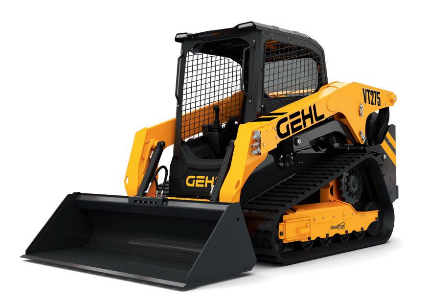 Three GEHL compact track loaders (the VT210, VT230 and VT275) deliver updates in safety and serviceability over previous GEHL CTLs. These models are vertical lift and feature a new lift arm design for visibility. The operator experience has also been upgraded with an update on GEHL’s patented folding door — and the new cab offers visibility with a new window and roof design. Breakout forces and tank capacities are increased for long operating times — all with a focus on lower total cost of ownership (TCO). Auxiliary hydraulics (both standard and high flow) have been upgraded and GEHL offers a full and expansive lineup of Manitou Group attachments to make these machines versatile. The patented track-tensioning system tensions the track to the proper tension when the machine is started and relieves the tension when the machine is turned off. Instead of greasing for proper tension every 50 hours or so, GEHL uses a hydraulic system to keep constant tension on the tracks. As this happens automatically, it takes less time to achieve proper tension. It also increases track life by up to 15% by keeping proper tension at all times and guarding against over tensioning. Over-tensioned tracks wear from the inside out and rob horsepower from the machine as it takes more effort to turn the track.