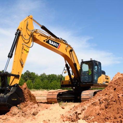 The SANY SY335C LC Excavator offers heavy-duty digging and lifting performance. This machine is powered by a 280.3-hp Cummins L9 engine and is capable of digging up to 22 ft., 4 in. deep. Equipped with a long undercarriage, the excavator generates a maximum swing speed of 9 rpm. The boom measures 20 ft., 2 in. for extended reach in rugged work areas. Standard auxiliary circuit configurations include one-way and two-way primary auxiliary and two-way secondary auxiliary circuits with dedicated auxiliary rotate pump. The SY335C has a large fuel tank, holding up to 143 gallons of fuel. For visibility, the machine comes equipped with both blind-side and rear-view cameras. Operators can access a 10.4-in touchscreen display inside the cab. This excavator features USB charging, Bluetooth connectivity and 12/24V low voltage outlets for powering devices. For safety, the machine comes with a motion alarm with cancel switch, overload alarm and electric horn. Customer can add the following optional components to the SY335C to meet their operating or project requirements: quick coupler, heavy-duty or high-capacity buckets, centralized lubrication system and protection screens for the cab.