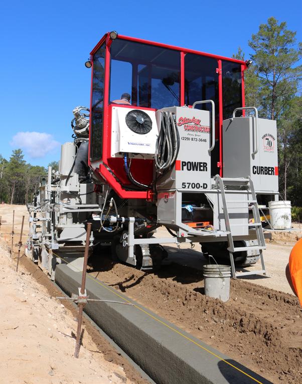 GOMACO offers the GT-3600 Hybrid curb and gutter machine for concrete projects and applications. This machine is powered by a 74-hp diesel engine (Cat C2.8), as well as a 48V generator and up to six 7 kWh lithiumion batteries for supplemental power. The G+ control system manages power flow and load on the GT-3600 Hybrid. This system switches to Motor Mode, activating the generator, when more than 74 hp is required. Generator Mode is activated by the G+ system when less than peak power is required. In this mode, excess power operates the generator to charge the lithium-ion batteries. The on-board water system features a 100-gal. water tank with a hydraulic pump, hose and nozzle. Operators can access four hydraulic circuits and two hydraulic vibrators with mounts on the GT-3600 Hybrid. Equipped with three crawler tracks for movement and positioning, the conveyor measures 16 ft.