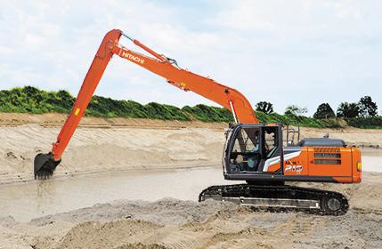 The ZX210LC-7H Super Long Front (SLF) excavator provides 50 ft., 4 in. (15.35 m) of reach at ground level and a 39-ft., 2-in. (11.94-m) dig depth. A proprietary hydraulic circuit has been engineered for safe operation. It includes an upgraded swing motor for next-level reach and control as well as Hitachi genuine bucket attachments that pair with the new ZAXIS-7 Super Long Front excavators. A part of the ZAXIS-7 series, the 54,900-lb. (24,900-kg) ZX210LC-7H SLF is a dedicated longreach excavator. The ZX210LC-7H SLF is the first of multiple long-reach excavators to be introduced to the market. The ZAXIS-7 SLF offers a redesigned operator station featuring large space with minimal vibration and noise. The heavy counterweight, proprietary hydraulic circuit and swing motor support operation of the super long arm. The hydraulic control valve is responsive, even when operating at or near maximum extension. Two work modes (Economy and Power) allow operators to tailor operations for jobsite conditions.