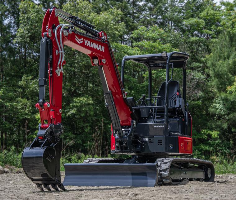 The 24.4-hp true zero tail swing excavator includes 360-degree visibility, a 25% increase in travel speed under load and a 7% improvement in excavator efficiency. The 8,047lb. model has increased excavation capabilities thanks to greater breakout forces and improved cycle times under load. Plus, a higher torque swing motor boosts power for backfill work involving swinging and usability on slopes. This is all powered by a three-pump hydraulic system that leads to less risk of slowing down during simultaneous operations — such as with the boom, stick, swing and curl functions. With 25% faster travel speeds under load, operators can move quickly around the jobsite. It’s also easier to transition to slower tasks thanks to the auto kickdown feature built into the two-speed operation. The model includes a durable undercarriage, cylinder guards, hose guards, strategic placement of the boom light to limit risk of damage, Yanmar’s diesel engine and more. The new model includes simplified fan belt tension adjustment thanks to the rearward location of the alternator. Its engine also doesn’t require the addition of a Diesel Particulate Filter (DPF), allowing for simple operation and service. Yanmar configures the ViO35-7 for convenient maintenance, including easy access to grease points and filter locations. Lastly, problems are easier to diagnose either by the owner or over the phone with a service center due to clear and intuitive error information on the display. Yanmar offers a standard hydraulic quick coupler, which is upgraded on the ViO35-7, providing easy attachment switching by allowing operators to engage or disengage — as well as see the status of — attachments without leaving the operator seat.