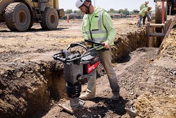 Serving as a battery-powered solution, the POWERSTATE Brushless Motor delivers power for compaction performance. The rammer compactor features push-button start and does not have an engine to maintain. No gas engine means fewer wearable parts, as well as less noise and vibration. Zero emissions results in a safe workplace indoors and in trenches. For control and maneuverability, a centralized user interface provides the user with start/stop and fast/ slow travel speeds. AUTOSTOP technology promotes safety by automatically shutting off the rammer in case it tips over. The MX FUEL REDLITHIUM FORGE HD12.0 battery gives 25 minutes of continuous runtime or over 1,320 ft. of compaction. REDLINK PLUS Intelligence supports performance and provides overload protection for the machine and battery during tough applications.