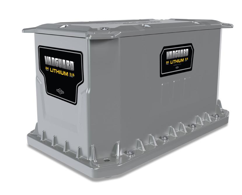 The Vanguard LithiumIon 3.5kWh Commercial Battery Pack is a power solution designed for original equipment manufacturer equipment. Available in both 24-volt and 48-volt options, it caters to a range of applications. Engineered with a durable diecast aluminum casing, the Fi3.5 battery is built to withstand demanding conditions, protecting against debris, dirt and extreme temperatures. The battery’s cell module assembly design supports power delivery and safety for reliable performance. The integrated battery management system monitors voltage and temperature for performance and safety.