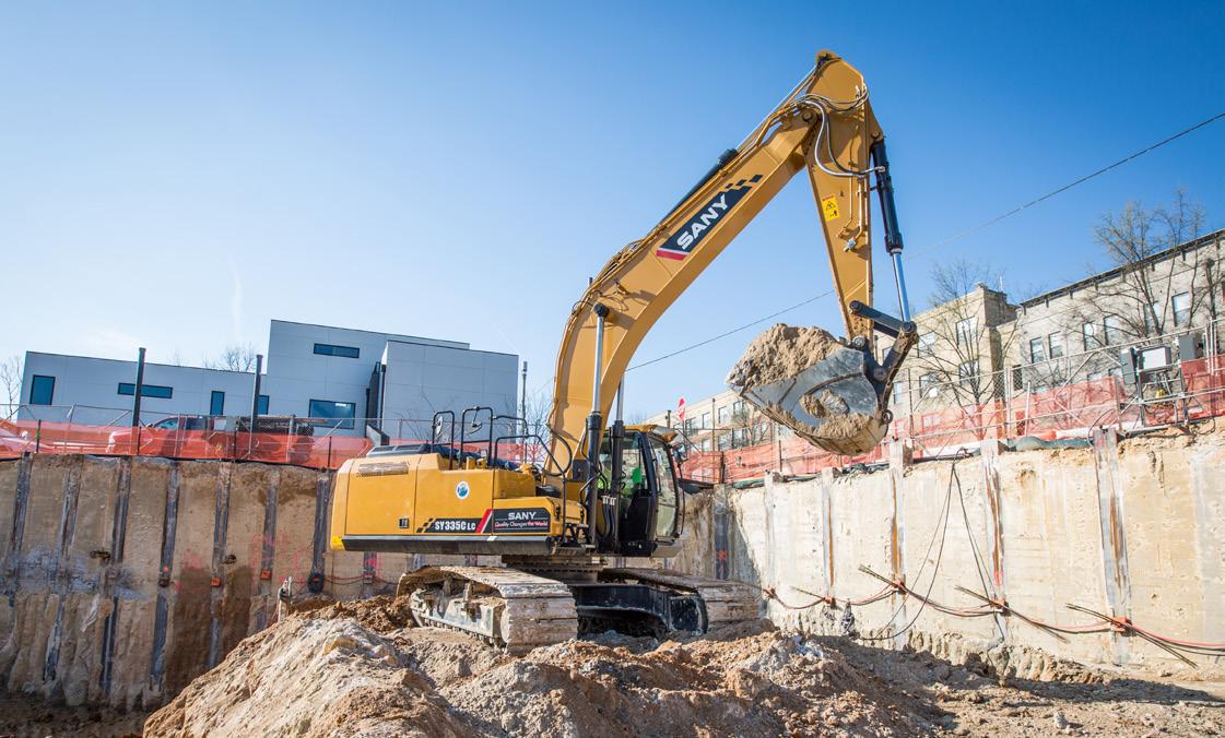 The SANY SY335C LC Excavator offers heavy-duty digging and lifting performance. This machine is powered by a 280.3-hp Cummins L9 engine and is capable of digging up to 22 ft., 4 in. deep. Equipped with a long undercarriage, the excavator generates a maximum swing speed of 9 rpm. The boom measures 20 ft., 2 in. for extended reach in rugged work areas. Standard auxiliary circuit configurations include one-way and two-way primary auxiliary and two-way secondary auxiliary circuits with dedicated auxiliary rotate pump. The SY335C has a large fuel tank, holding up to 143 gallons of fuel. For visibility, the machine comes equipped with both blind-side and rear-view cameras. Operators can access a 10.4-in touchscreen display inside the cab. This excavator features USB charging, Bluetooth connectivity and 12/24V low voltage outlets for powering devices. For safety, the machine comes with a motion alarm with cancel switch, overload alarm and electric horn.