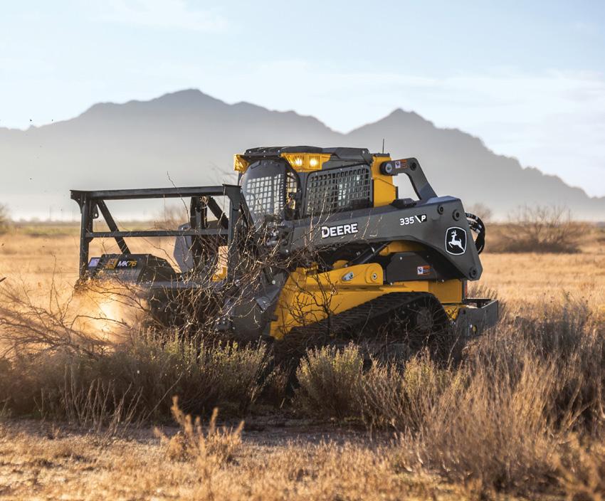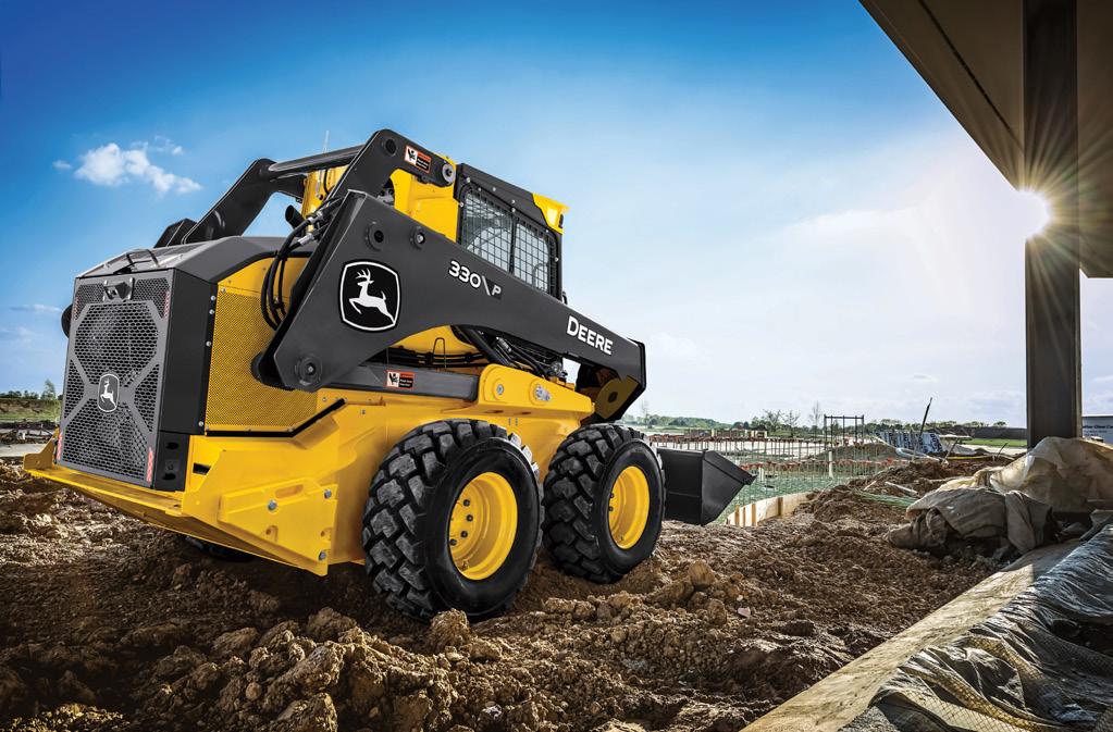 The skid steer features an operating capacity of 2,950 lbs. Compatibility with a range of John Deere attachments allow operators to use the skid steer for various applications and tasks on the jobsite. This machine is powered by a Yanmar engine, generating 98 hp during use. A large 25.5-gallon fuel tank holds fuel for extended operation. A bucket breakout force of 10,500 lbs. provides the required performance for demanding jobs.