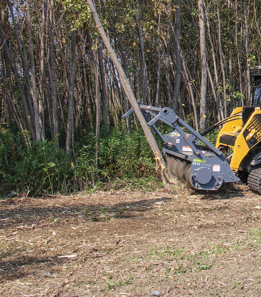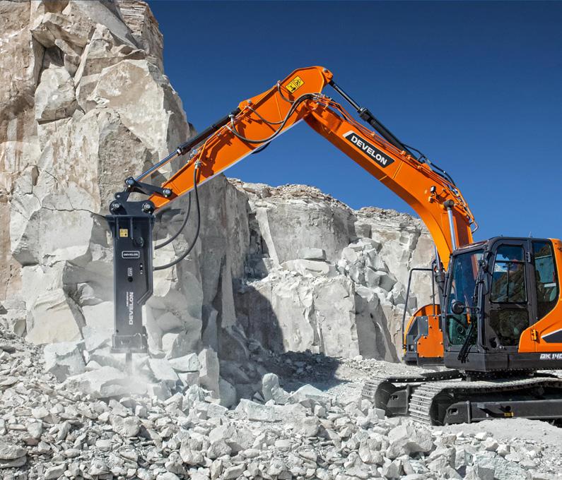 The new lineup of excavator drum mulchers from Blue Diamond Attachments includes three models (Heavy Duty, Extreme Duty and Severe Duty) with cutting widths ranging from 30 to 50 in. Compatible with compact, mid-sized and full-sized excavators ranging from 4 to 20 mt, many components, including the frame, are made with high-strength structural steel and the frame of each model has been reinforced for rigidity and strength. Parts exposed to wear, like the skids and counterblades, are built from wearresistant steel. Counterblades on the heavy and extreme duty models are heat treated and reversible to double their lifespan.