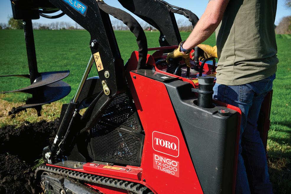 The TB395W excavator weighs 23,424 lbs. when equipped with outriggers and a blade. It’s powered by a Tier-4-Finalcompliant diesel engine delivering 114 hp at 2,200 rpm and up to 339 ft. lbs. of torque. A closed-loop, load-sensing hydraulic system delivers control of the work equipment and a range of hydraulic attachments. The TB395W features two steering modes — 2WS (two-wheel steering) and 4WSC (four-wheel with crab steering). A two-piece boom with long arm allows for clearance between the bucket and dozer blade due to arm-mount position. This design allows TB395W operators to pull the bucket all the way back to the dozer blade, which is designed for working in narrow spaces or moving an obstacle out of the way. An Auto Cruise feature enables operators to set and adjust their travel speeds with a toggle switch. Auto Cruise is designed for using attachments that require a consistent, repeatable travel speed, such as a mulcher, mower or trencher. The excavator’s 13 ft., 5.2 in digging depth and 27-ft. cutting height makes it useful on construction sites. The TB395W offers a maximum bucket breakout force of 13,241 lbs., a maximum arm digging force of 8,925 lbs. and a traction force of 12,994 lbs. The TB395W is equipped with three auxiliary circuits that cater to different hydraulic requirements.