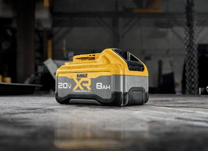 With tabless battery cell technology, the XR POWERPACK 8 Ah battery joins the XR portfolio comprising 20V MAX batteries and power tools from DEWALT. The addition of XR POWERPACK and XR POWERSTACK batteries, means the XR battery line now contains two batteries from DEWALT. The XR POWERPACK battery is for applications demanding power and runtime. The XR POWERSTACK batteries deliver power in a compact size. The tabless XR POWERPACK battery supports energy flow by forcing energy through multiple tabs to distribute power, rather than passing through a single tab used in traditional cells. Designed with a durable, overmolded base, the battery possesses impact and weather resistance.