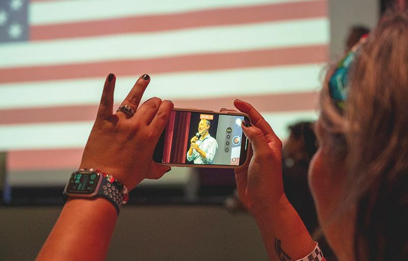 Along with registering voters, the occasion for the rally was to show support for the 54 Texas Democrats who broke quorum (“Unfair Fight,” Aug. 6) and to raise awareness of Republicans’ efforts to redistrict Tarrant County in their favor. O’Rourke was joined at the Ridglea by U.S. Congressmen Joaquin Castro and Marc Veasey and Tarrant County Commissioner Alisa Simmons. Headliner O’Rourke was easily the most electric. Like Newsom, he’s not afraid to meet Republican politicians and talking heads at their low level.