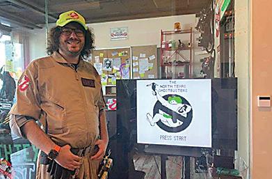 Zach Hidalgo, webmaster for the North Texas Ghostbusters, premiered the official Nintendo Game Boy game at their temporary headquarters in Denton’s Visitors Center & Gift Shop during the city’s 31 Days of Halloween celebration.