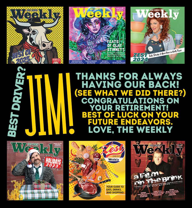 We’d Like To Hear From You! For potential coverage in our listing sections, including Ate Day8 a Week, Bulletin Board, Big Ticket, Crosstown Sounds, or Night & Day, or for information on being a Guest Contributor, email the details to Marketing@fwweekly.com. WANT TO ADVERTISE?