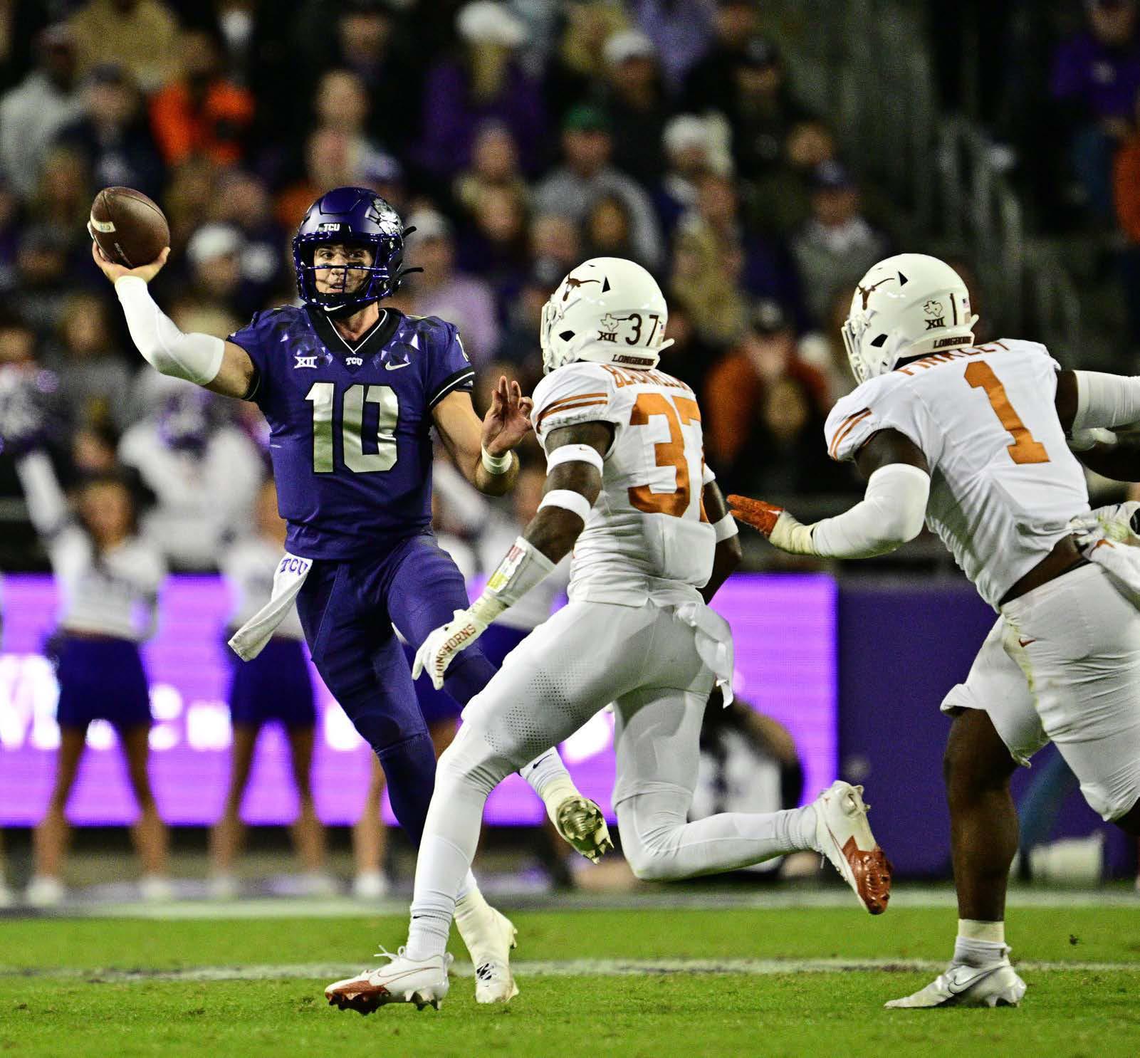 This season’s resetting of expectations for Purple Nation should leave fanatics primed to consider a 7- or 8-win season a hopping success. Even with the expanded playoff, I wouldn’t expect even a third-place Big 12 squad to make the dozen. Most prognosticators are considering Kansas State and Utah to be the class of the conference, which is a sound prediction. TCU is kind of that “might be good second or third tier” along with Oklahoma State, Iowa State, Kansas, and UCF. The Frogs usually play a little better when they’re underestimated, but I think fulfilling their projected status of fourth or fifth in the newly expanded conference would be a great season for Dykes and company to build on, and no one on the current staff would need to be shopping for a new job for Christmas. l