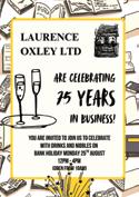 Oxley’s invites you to join them in celebration of their 75th birthday, with drinks and nibbles in the bookshop on bank holiday Monday 25th August, from midday until 4pm (the bookshop will open at 10am).