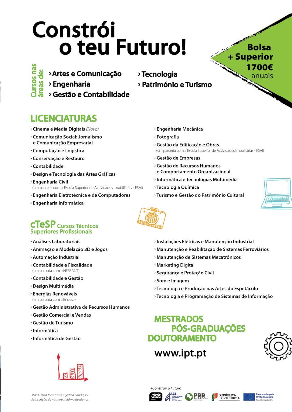 profissional e o da Arte e Cultura. Fica a saber mais sobre a experiência de estudar no ensino superior e prepara-te para tudo o que esse universo te pode oferecer em termos de desafios e oportunidades. Inscrevete já no código QR!