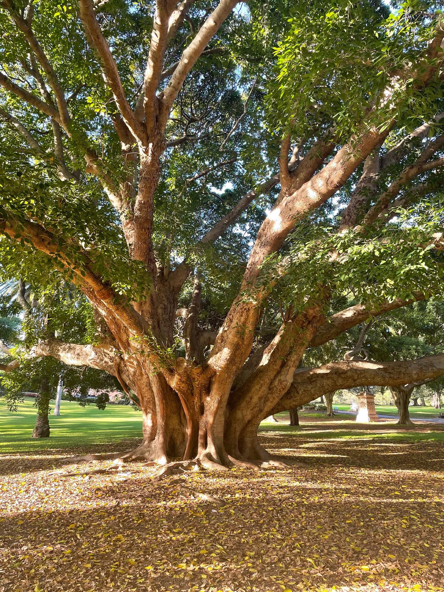 Our palm is probably not much taller than 10 metres, which makes it easy to study. It was probably planted around 1860 into what was reclaimed land. Given its location, its roots may be in saline soil which is constantly refreshed by the regular tidal inundation. On the occasions when we have had torrential rain coinciding with high tides, this area can be under water for some time.