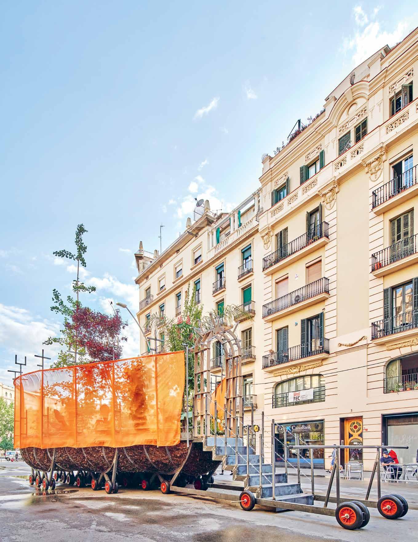 Roaming the streets of Barcelona during the Model festival, Takk’s portable gardens materialized the studio’s idea for mobile planes of green public space that could temporarily be moved to highly polluted areas to absorb CO2, or act as classrooms where knowledge on biodiversity is shared.