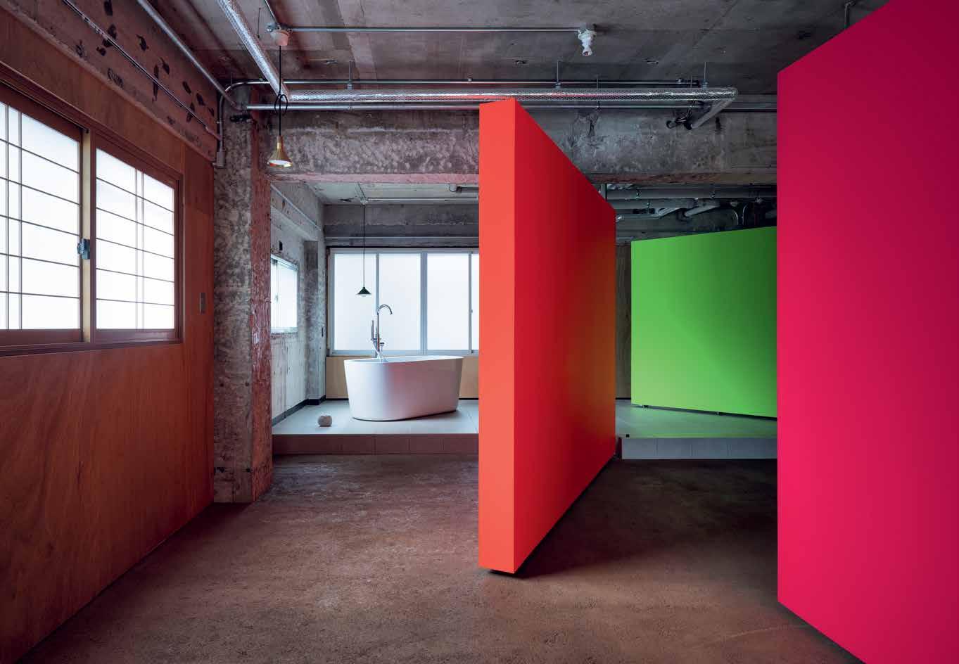At Fishmarket, the studio of Japanese visual artist Hiraki Sawa, large moveable neon panels encourage alternative interpretations of the space and create separate areas within it. Responsible for the simple yet dynamic interior, Ab Rogers Design describes these zones as ‘playful chambers that inspire different ways of being, and can be reimagined in a number of scenarios’.