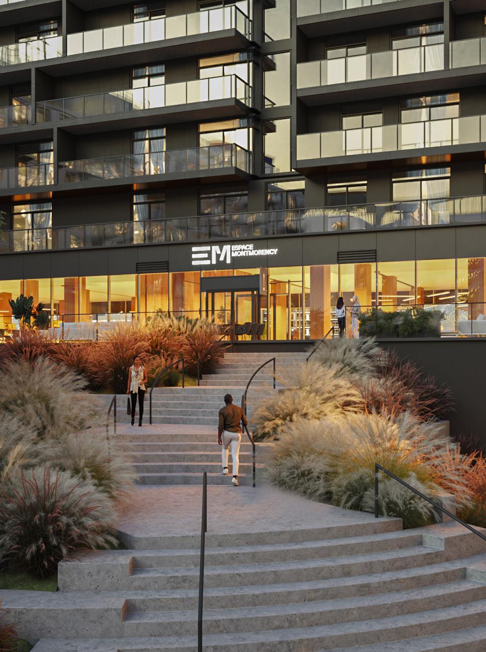 Orly, le deuxième projet réalisé avec Développement TOD, se trouve dans le même quartier que le Milo et se distingue par son design audacieux et ses nombreuses aires communes, qui incluent une salle d’entraînement, une piscine extérieure, une terrasse sur le toit, un chalet urbain, un hall d’entrée et une station de lavage pour voitures.