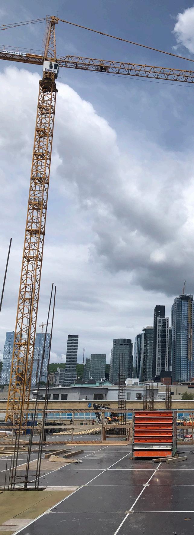 L’une des plus grandes réussites de l’entreprise en 2022 est sans contredit l’achèvement du coffrage de la tour de la Banque Nationale, dont l’architecture emblématique est signée par la firme MSDL. Avec une hauteur de 200 mètres, il s’agit de la plus haute tour au Québec entièrement en béton, et la deuxième plus haute tour de Montréal après le 1000 de la Gauchetière. C’est l’équivalent montréalais des gratte-ciels prisés de New York, tant par sa complexité que par sa silhouette distinctive, caractérisée par une importante inclinaison. Ce projet de plus de 40 étages correspond en hauteur à un bâtiment d’approximativement 70 étages, car chaque étage équivaut à près de 2 étages d’un bâtiment standard.