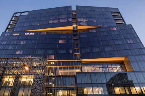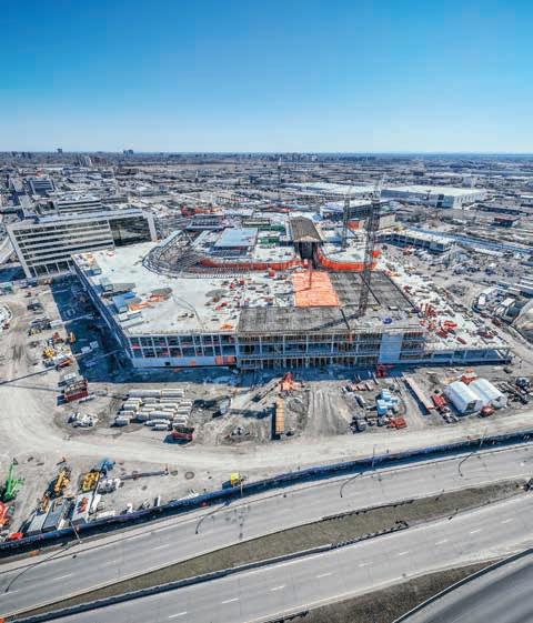 QMD a aussi livré récemment Le Solstice, une prestigieuse tour résidentielle. Située à proximité du Centre Bell, elle comporte 44 étages, pour un total de 330 condominiums luxueux. Érigé en collaboration avec les concepteurs de NEUF Architect(e)s, cet immeuble se distingue par l’utilisation de matériaux chaleureux qu’on retrouve dans certains bâtiments historiques de Montréal, tels la brique rouge et le bois. Malgré les défis de logistique liés à la densité du secteur, à la présence d’autres tours, à la hausse des coûts des matériaux et à la rareté de la maind’œuvre, QMD a réussi à limiter les nuisances pour les habitants du quartier et à respecter ses engagements avec les partenaires et les clients propriétaires.