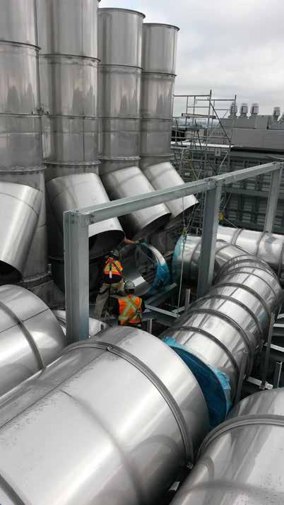 Le couvreur a pu compter sur ses partenaires Fixed Systems pour l’approbation du système de levage au Québec, ainsi que sur SA Construction pour l’installation des pattes et ancrages du système de rails de la toiture.