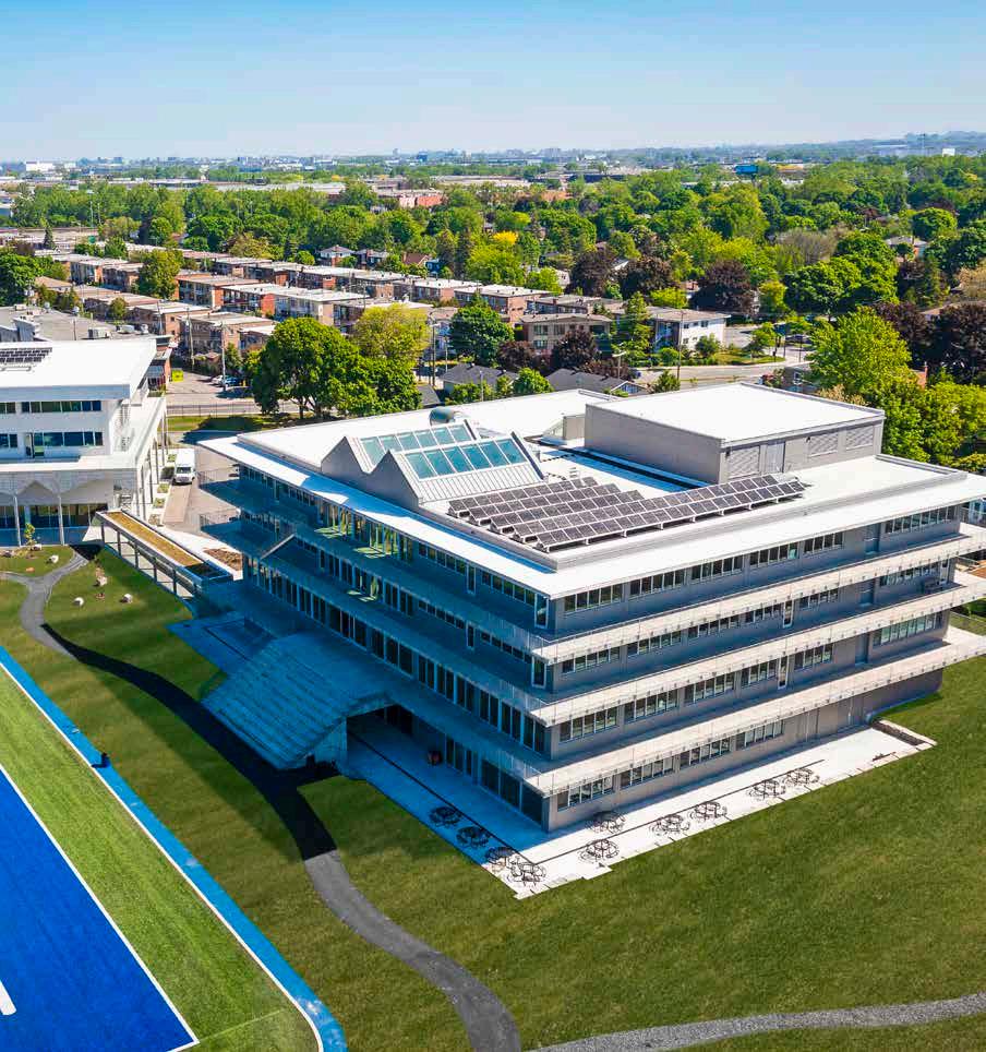 La construction d’une nouvelle école secondaire pour le Collège Sainte-Anne, à Dorval, réalisée en gérance, témoigne sans contredit de ce savoir-faire inégalé. Terminé en 2022, ce projet consistait à ériger sur le site de l’école primaire un nouveau bâtiment qui réinventerait l’environnement d’apprentissage pour favoriser la collaboration et la créativité. La direction, qui souhaitait également que l’édifice soit carboneutre, a impliqué l’entrepreneur général dès l’idéation du projet.