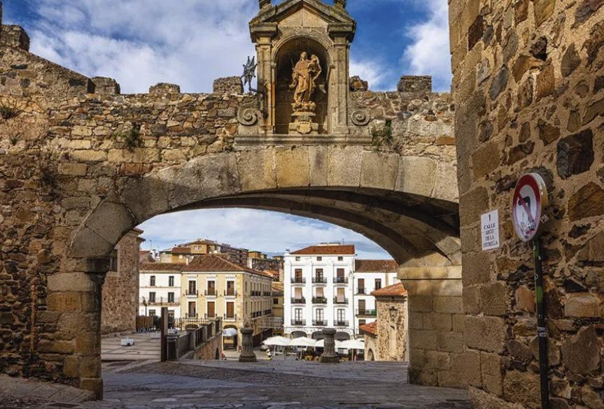 Desayuno en el hotel. Por la mañana, iniciaremos una visita al casco histórico monumental de Cáceres, cuya historia abarca una rica variedad de estilos: románico, islámico, gótico y renacentista italiano. De la época musulmana se conservan unas treinta torres, destacando entre ellas la célebre Torre de Bujaco. También visitaremos el aljibe hispano-musulmán bajo la Casa de las Veletas.