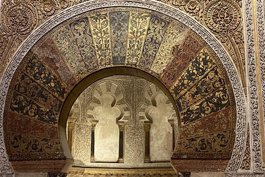 La ciudad, que alcanzó su máximo esplendor durante la dominación islámica como capital del Califato de Córdoba en los siglos X y XI, conserva un legado arquitectónico y artístico de extraordinaria relevancia. Su monumento más emblemático es, sin duda, la Mezquita-Catedral, conocida por su innovadora arquitectura y su singular fusión de estilos. Originalmente concebida como lugar de culto islámico en el siglo VIII, la mezquita se amplió progresivamente hasta convertirse en uno de los mayores exponentes del arte califal. Sus arcadas de herradura, alternancia bicolor de los arcos y columnatas, así como el impresionante mihrab decorado con mosaicos de gran exquisitez, constituyen un testimonio excepcional de la sofisticación artística y espiritual de la Córdoba islámica.