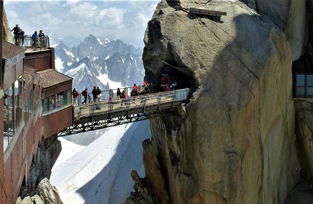 Desayuno en el hotel. Por la mañana, tomaremos el teleférico de l’Aiguille du Midi, una extraordinaria obra de ingeniería que alcanza los 3 842 metros en apenas veinte minutos. ç