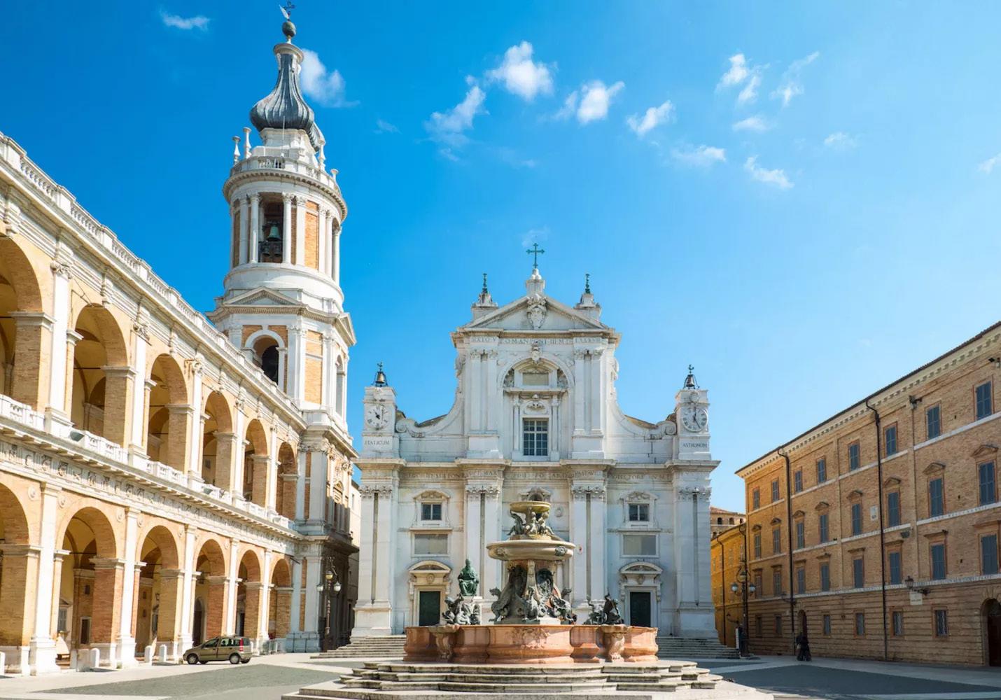 El famoso santuario de Loreto, bajo cuya cúpula se encuentra la Santa Casa con un magnífico revestimiento de mármol, data del s.XV, obra de Giuliano da Sangallo.