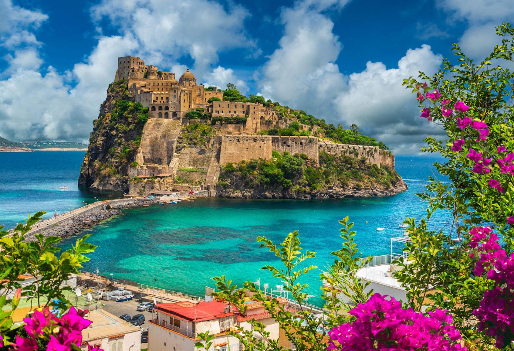 Ischia, la mayor de las islas del golfo, es famosa por su exuberante vegetación y sus pintorescos pueblos costeros. Nos dirigiremos a Ischia Ponte, donde se alza el majestuoso Castillo Aragonés, icono de la isla.