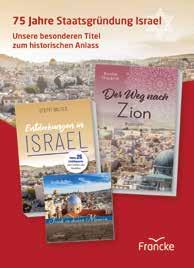 Oft wurden wir danach gefragt, jetzt ist es endlich so weit: Anlässlich des 75. Geburtstags des Staates Israel legen wir die Zion-Chroniken von Bodie Thoene neu auf (S. 24-28)! Zudem erscheint ein Geschenkheft von Steffi Baltes mit Fürbitte-Impulsen und Gebeten für die Menschen im Heiligen Land (S. 29).