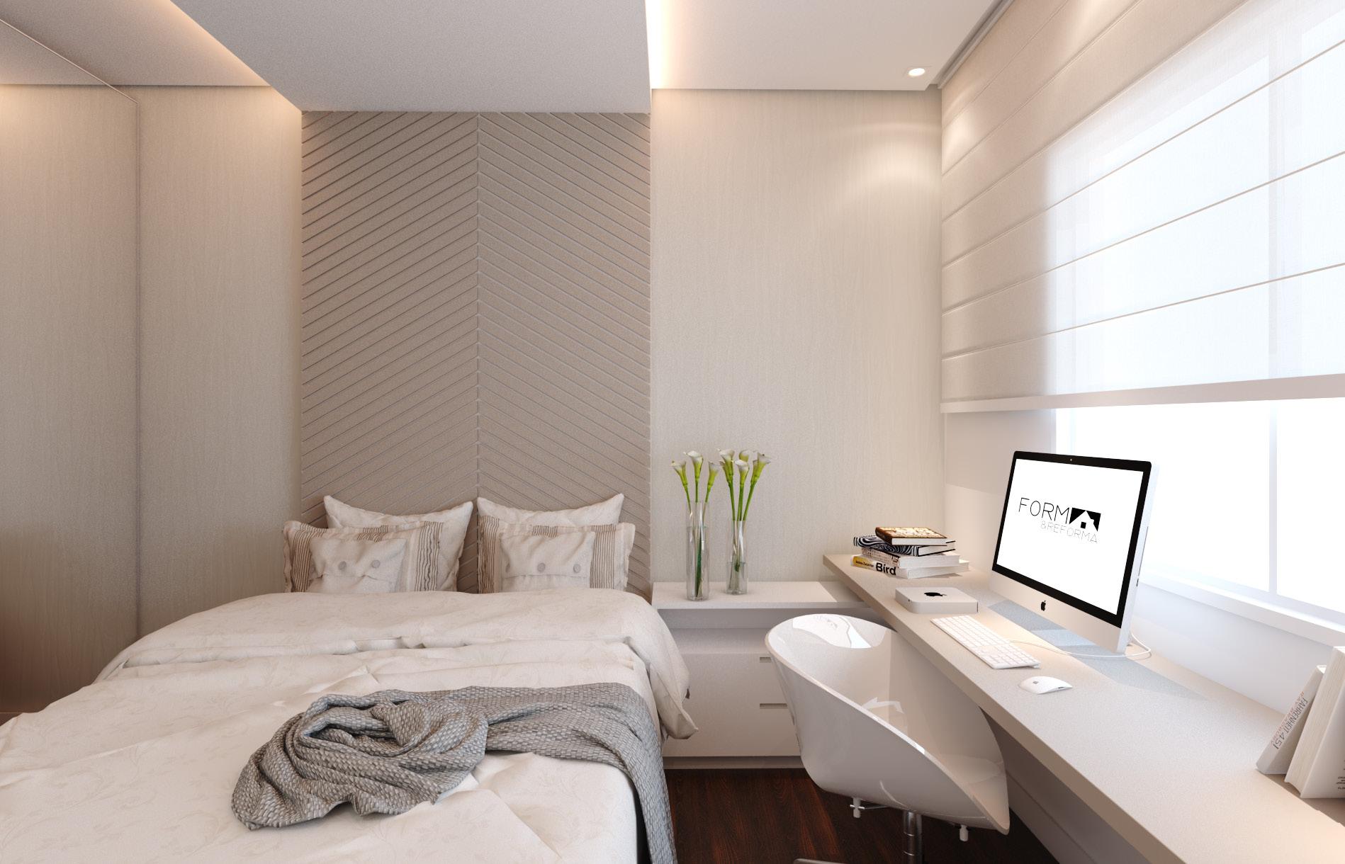 In the couple’s bedroom, lighting plays a key role, visually expanding the space and enhancing daily routines, ensuring a well-presented and organized environment without sacrificing comfort.