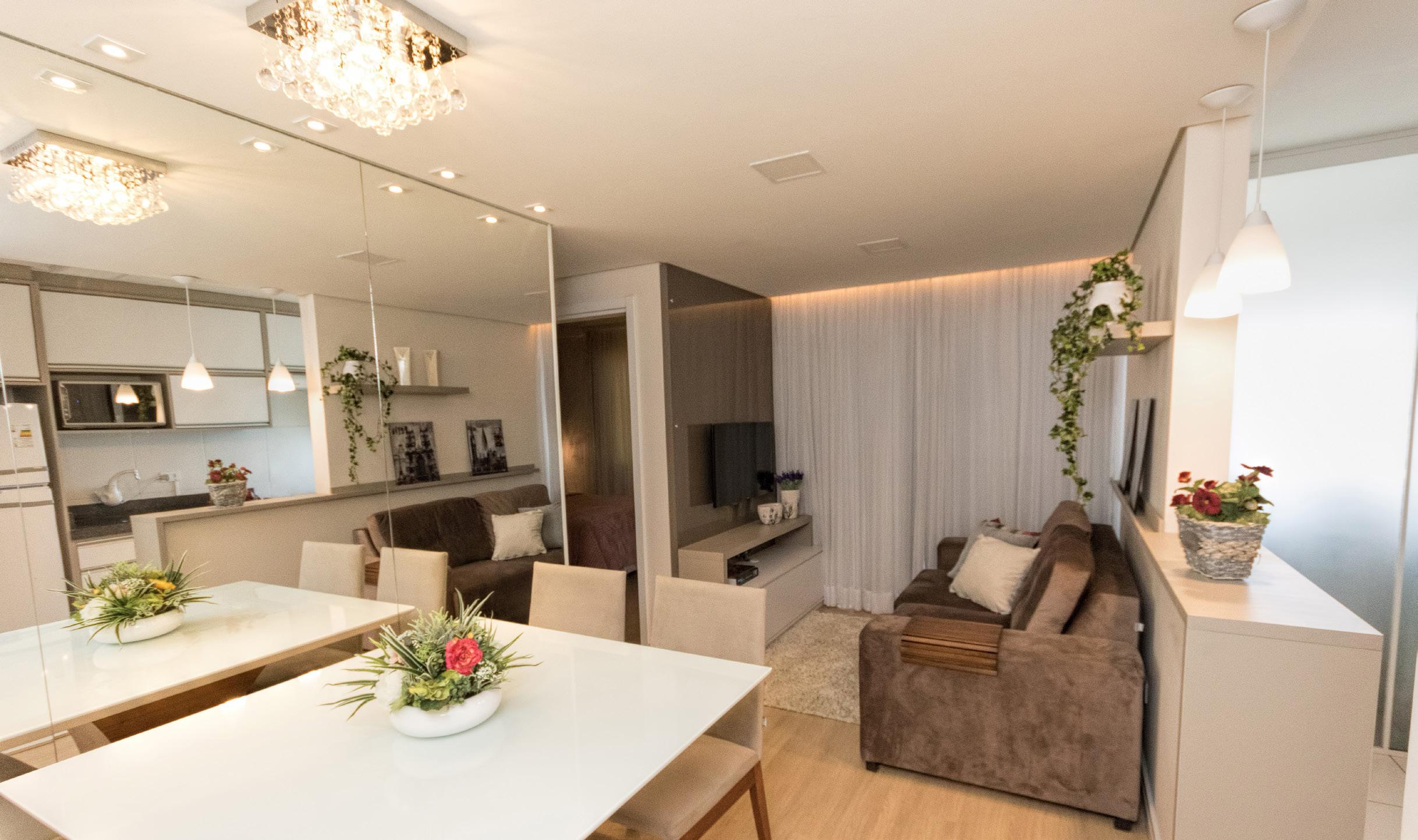 With 60 square meters, the apartment gained personality through a dark blue metro tile wall, along with metalwork and decor accented by vibrant colors.