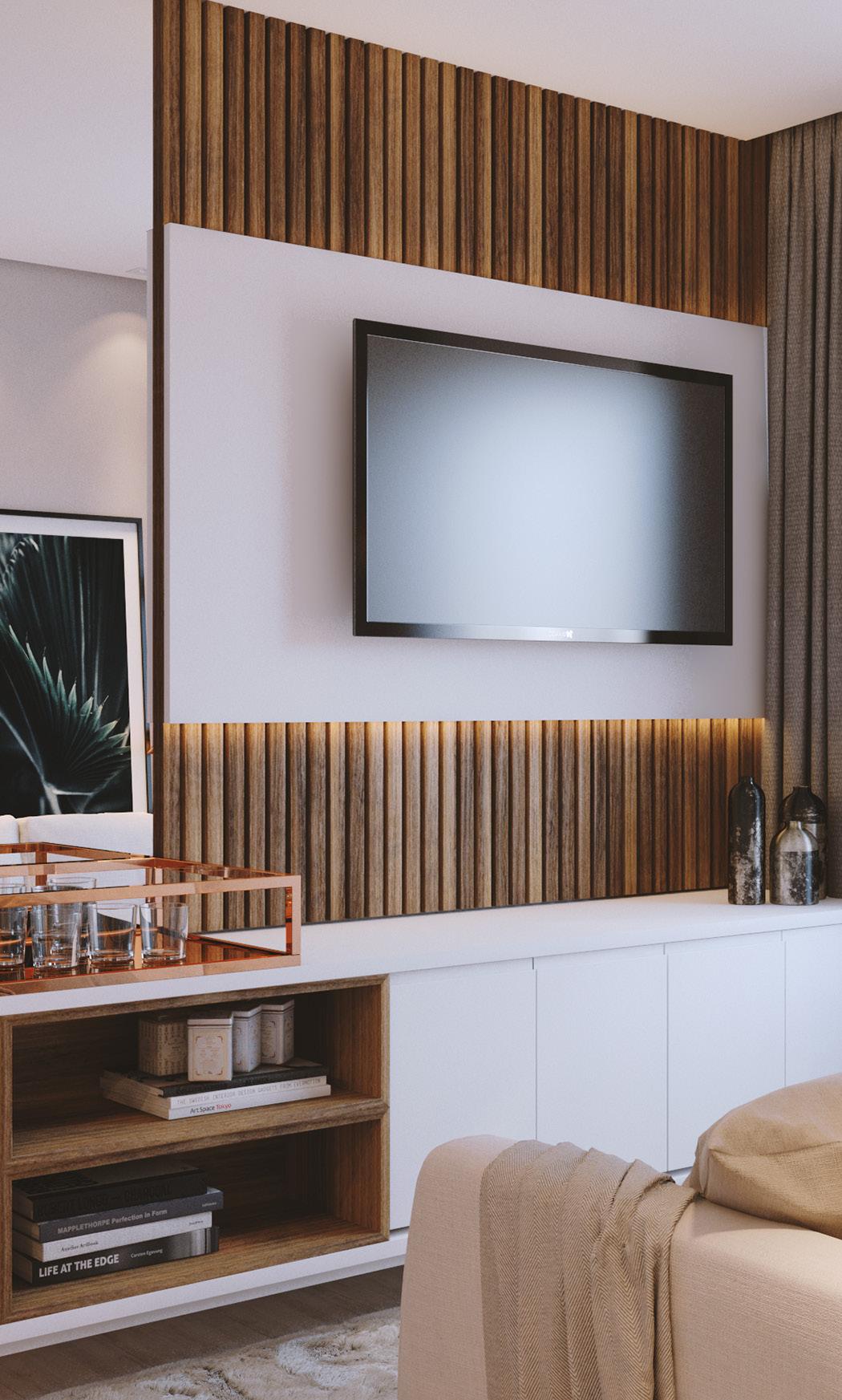 To achieve this, the project was based on neutral and beige tones, bringing a sense of lightness and sophistication. Wood extends throughout the space, adding warmth and elegance.