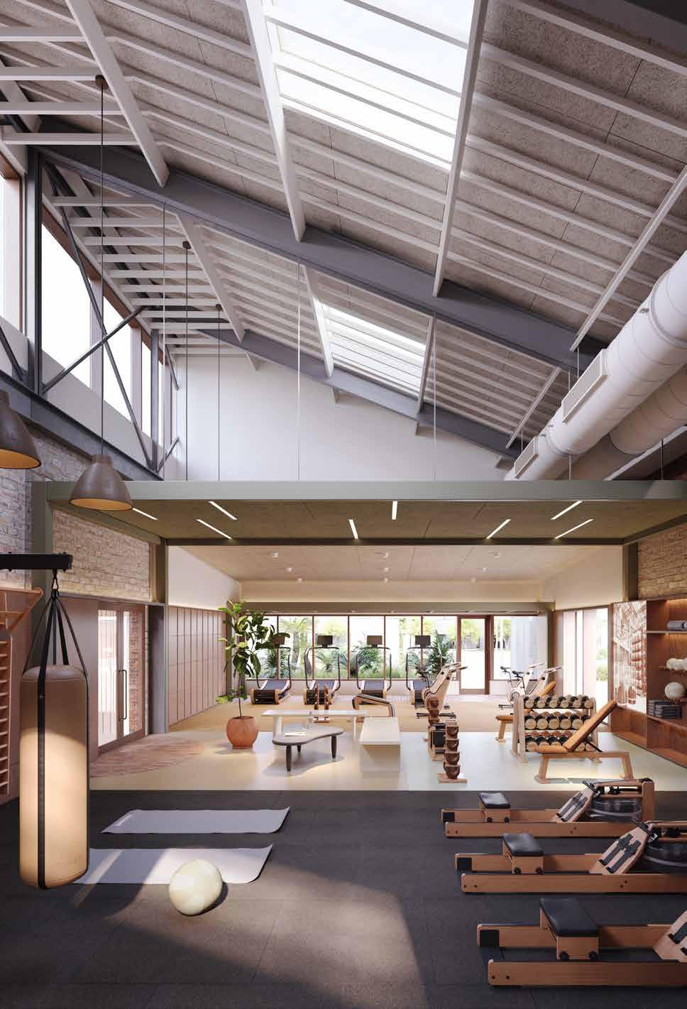 Within the Wellness Sanctuary, a state-of-the-art gymnasium supports modern wellness demands while immersing in design that respects the building’s industrial roots. Voluminous heights, raw brick walls and intricate ceiling purlins meet mirror lined walls and top tier fitness equipment for strength training, cardio and recovery. A collection of free weights and specialised equipment further enhance the unique character of the gym.