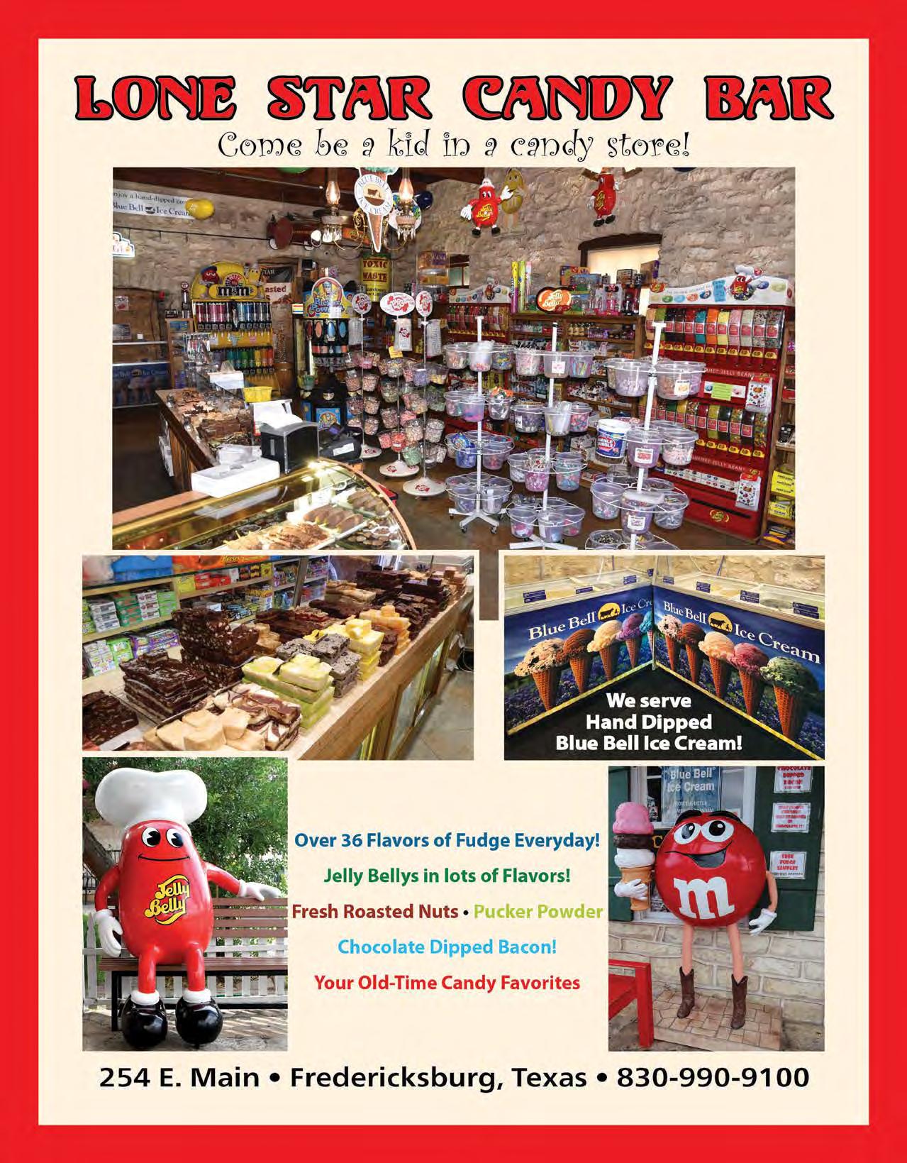 116 Rock&Vine FREDERICKSBURG TEXAS General Store We have something for everyone. Open seven days a week, earlier and later than most others. 143 E. Main St. ~ 830.990.4100 Proud member of www.fbgEnEralStorE.coM Your Fredericksburg Souvenir Headquarters