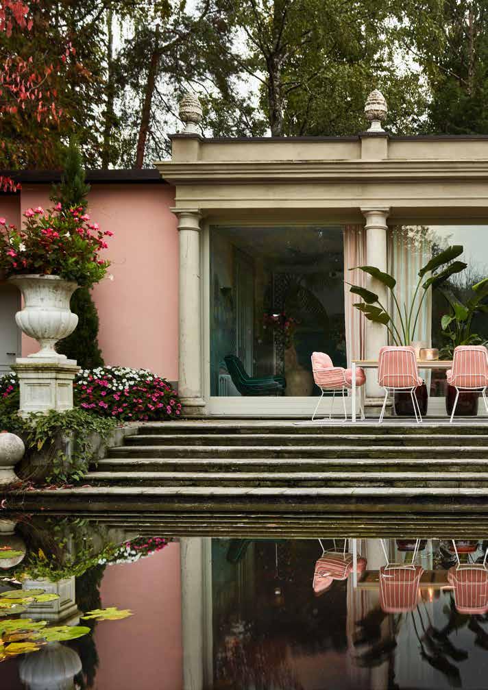 Meaning “folly” or “madness” in Latin, La Foleia is, if you ask owners Gemma Richards and Niccolò Rignano, the perfect name for the magical space they’ve made of this property near Lago Maggiore in northern Italy. “It was madness to create this place,” Gemma says of the location where we shot the latest campaign for Leya and Leyasol – and she doesn’t just mean all the work they put into the property and its grounds. She is also referring to the architects who designed the building back in the 1990s. “It was a beautiful location set in a classical landscape with woodlands, but without views over the mountains or of a lake,” Gemma explains. When they found a spring, the lakes were created and the two villas opposite each other followed. For Gemma and Niccolò, the property didn’t actually come at the right time: They were working on other projects when a family friend told them about this very special place and insisted that they needed to see it. They instantly fell in love. “It was December, the light was bad, the lake was completely frozen,” Niccolò remembers. “But we saw the potential and decided to take over this project. It just felt right.” It was love at first sight and with Gemma and Niccolò’s help, it has become this magical place it is today.