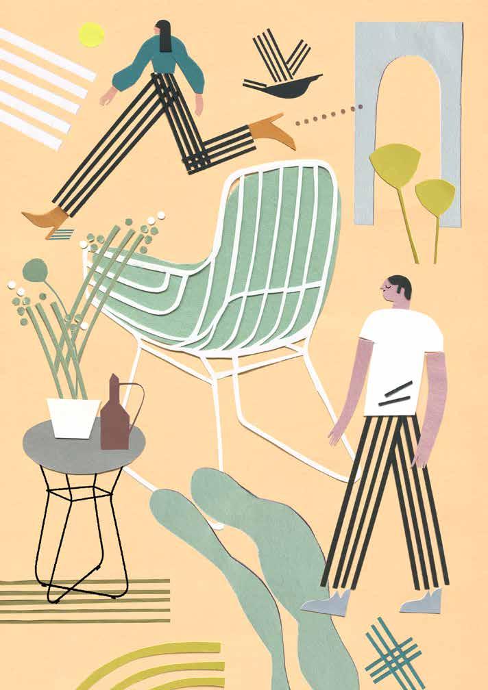 CK: Ich stelle mir eine Situation auf einer Terrasse am Wasser vor. Der Grill duftet und wir genießen mit Freunden und Familie einen lauen Abend. Nach dem Essen wechseln wir auf Schaukel, Wingback Chair und Sofa, um dort mit einem Glas Wein in der Hand den Sonnenuntergang zu genießen.