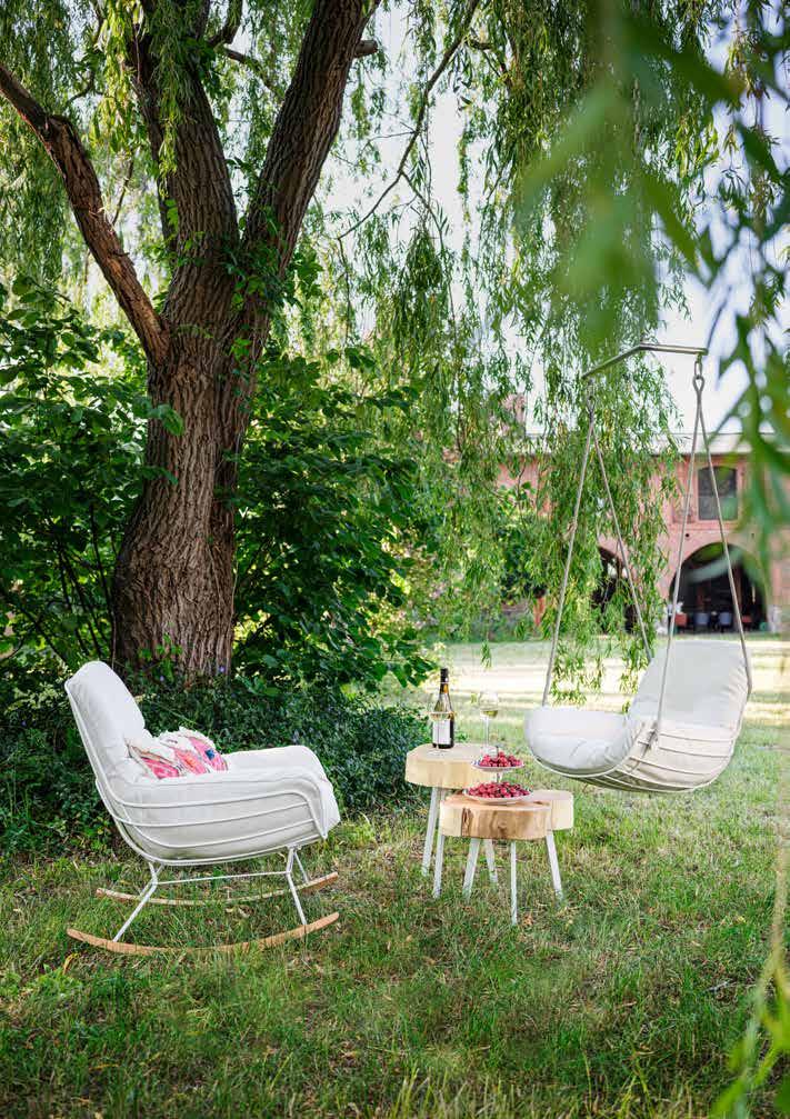BH: For me, I‘d spend the evening in my swing seatwith a glass of wine, too, and with a book. If you asked me where I‘d hang up my swing, I‘d say somewhere in Italy next to a particularly beautiful lake.