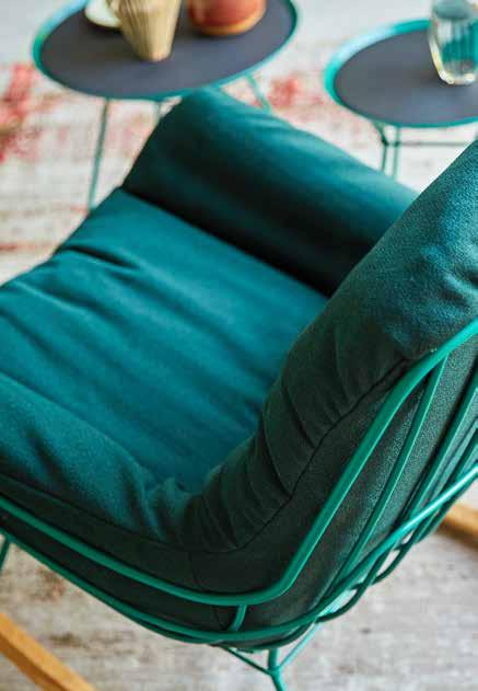 BIRGIT HOFFMANN (BH): Formal war es sicher weniger komplex, als wenn man eine ganz neue Kollektion entwirft, da wir mit Leya schon eine Art Vorlage hatten. Die Herausforderung war es, spezielle outdoortaugliche Materialien zu finden –von den Polsterfüllungen bis zu den Bezugsstoffen –, die sich technisch gut verarbeiten lassen, entsprechend strapazierfähig sind und dabei optisch zum Freifrau-Look passen.