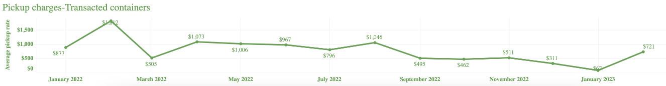 Central Asia saw a 36% rise in average container prices for trading, followed by a 5.25% increase in North-East Asia, whereas South-East Asia saw a 6.25% drop in January 2023.