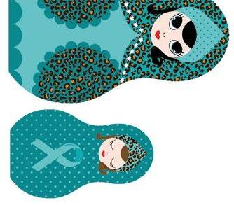 Een van de dingen die Mabel weer opgepakt heeft, is haar hobby grafische vormgeving. Haar creatieve talent zet ze nu in om meer aandacht te vragen voor eierstokkanker. Zo ontwierp ze een matroesjka, die symbool staat voor vrouwelijkheid en fertiliteit, in de kleuren die horen bij eierstokkanker. Het doel: net zo bekend worden als de pink ribbon, het roze symbool voor borstkanker. „Ik zoek nu de samenwerking met bedrijven die het bijvoorbeeld in een sieraad of op een kledingstuk willen verwerken. Het geld dat daarmee opgehaald wordt, kan gebruikt worden voor onderzoek naar eierstokkanker."